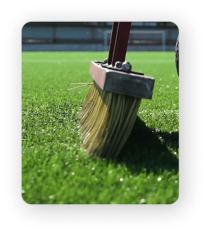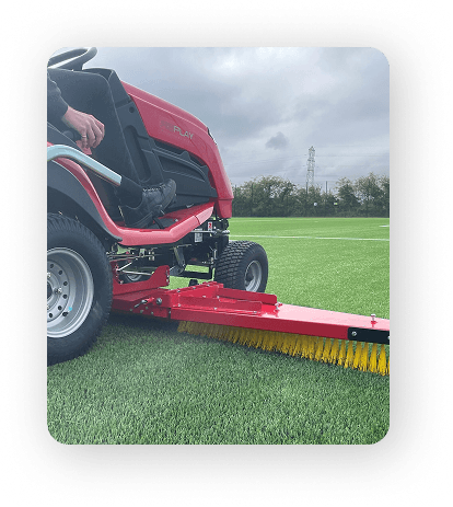 Regular drag brushing, with a rigid brush or mat, ensures the redistribution of the displaced infill, whilst also agitating and lifting the fibres of the surface thereby reducing the damage that can be caused due to low-infill levels particularly in high-use areas.