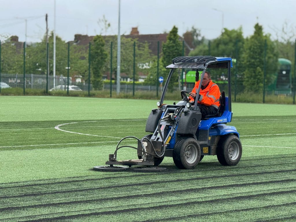 Specialist maintenance machinery is built to do these jobs properly. From brushing units that lift fibres evenly to decompaction tools that restore shock absorption and drainage, the right kit delivers consistent, thorough results across the whole surface. It’s also far more efficient, covering large areas quickly, without compromising on quality. Resulting in a better playing experience, safer surfaces, and fewer costly surprises down the line.